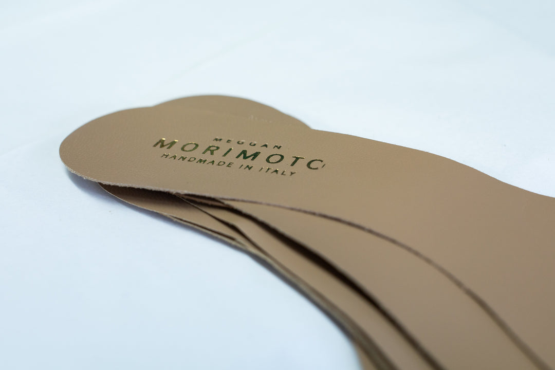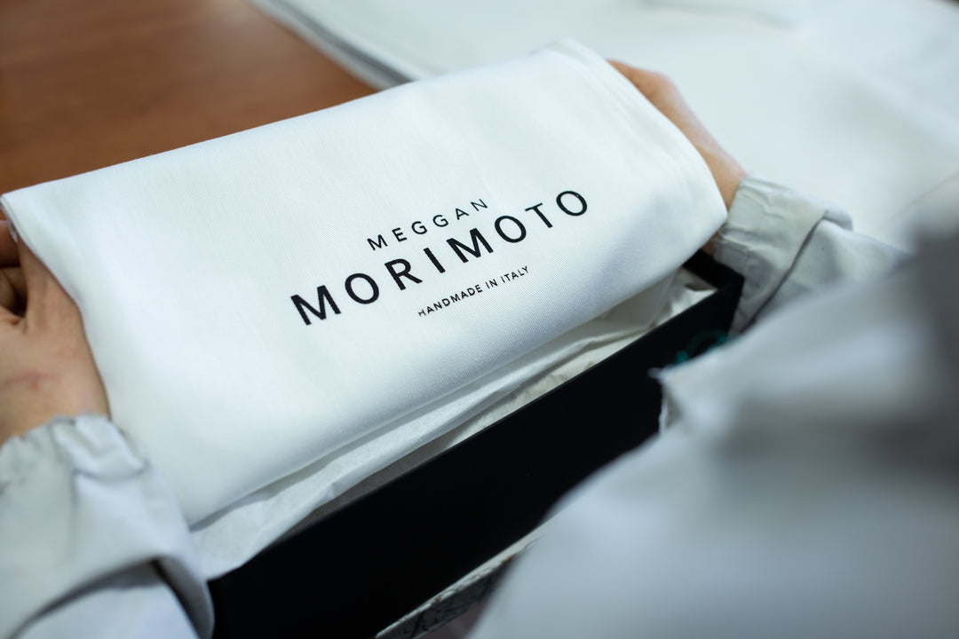Store your shoes in a cool dry place. To protect your shoes from dust, store them in your Meggan Morimoto dustbag.